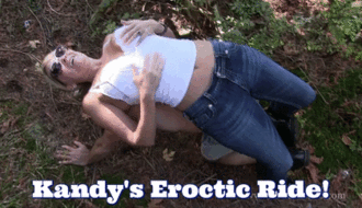 Eventually Kandy decides to test the pony out as a bench so she can enjoy the afternoon sun. She sticks her hand down her pants and panties and torments the slave by telling him what she is doing. “You’re a wild beast, you can’t have my pussy” she tells him but says she will let him lick her finger if he gives her a longer ride. Soon she is back on him and they continue down the trail. Kandy then turns so she is sitting backwards and makes him carry her some more. Now Kandy stands up and pulls her pants down and slides her panties to the side before sitting down again. She has the pony jiggle while she touches herself, it’s almost like having a vibrator. She suggests pissing all over the slave but really focuses now on getting herself off. “My pussy is so sweaty” she says. She then sticks her finger in the pony’s mouth before making him ride some more while she continues to touch herself. Kandy is so lost in her own pleasure she forgets about the pony until he collapses. No problem, she uses him now as a mattress touching herself more until she eventually reaches out with her fingers and gives them to you to lick. She can’t really reward her pony after all!