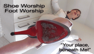 Mistress T really knows how to a high heel fetishist crazy in this scene. She struts her beautiful stilettos right by your face as she describes all the things she wants to do to you and all the things she wants you to do to her shoes. Her high heels are so close to your face... you can just reach out and lick them. But she's not finished with you yet. She sits down and removes the shoes so she can make you smell them. The nice pungent aroma makes your cock ready to burst and she knows this. She starts to tease you with her bare soles... rubbing them in your face... ordering you to lick the sweat off them before she commands you to stroke your cock and shoot your hot filth all over them.